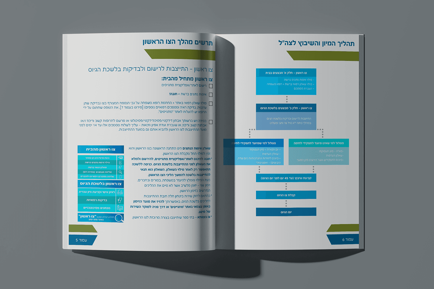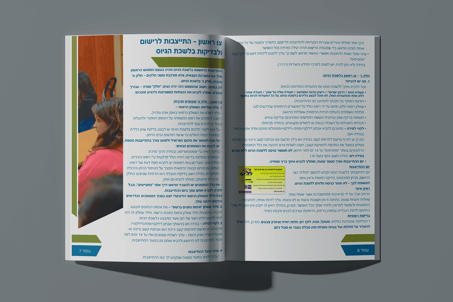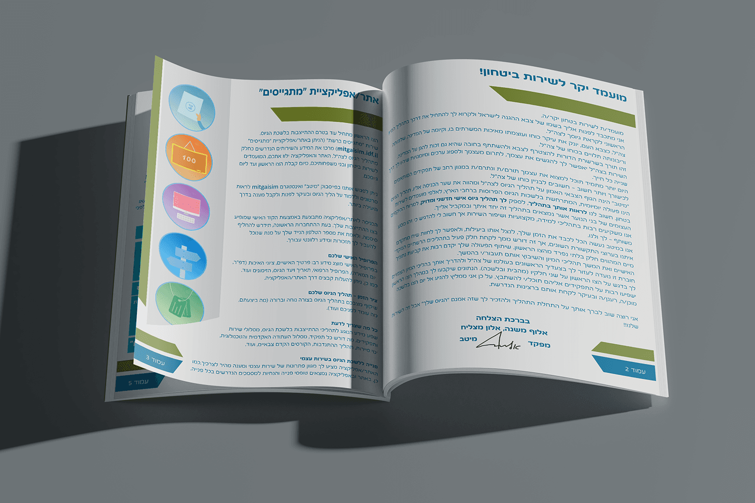 I had the opportunity to personally Direct and produce the Branding and Layout Design of The Official Recruitment Information Booklet of the Israel Defense Force. A 40-pages long, soft cover-paperback booklet, designed to align with the brand and visual identity guidelines of the Meitav Unit - the MEPR Military Body, which oversees the drafting and recruitment process for the Military. Following the deisgn, I continued to oversee and coordinate the printing production and implemented recurring monthly updates to the document’s content to reflect evolving military regulations, a responsibility I carried out until June 2023. The goal was to create a format that felt clear, structured, and welcoming, ensuring that young recruits could easily navigate the document as they began their enlistment journey. This project was carried with the Digital Marketing Division's Studio of Meitav Unit under the Personnel Directorate.